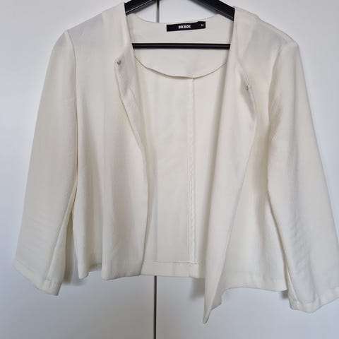 Laadukas ja mukavan tuntuinen vaalea jakku. Pieni huomaamaton tahra hihassa (kts kuva), ei ole yritetty pestä sillä itselle liian lyhyey hihat. Täältä ostettu. Hyvä ja siisti kunto.