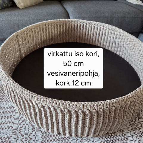 🩶 Ontelokuteesta virkattu kori vaneripohjalla