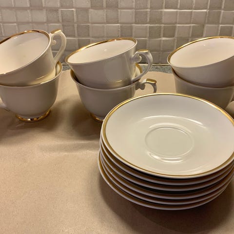 Arabia Karoliina Raija Uosikkisen suunnittelemat kahvikupit 10 kpl ja asetit 12 kpl.