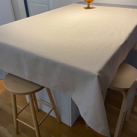 Kerran pöydässä ollut beigen värinen pöytäliina. Ei tahroja!