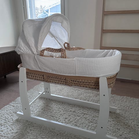 Hyvä kuntoinen "Mooses"-kori sänky/kehto.