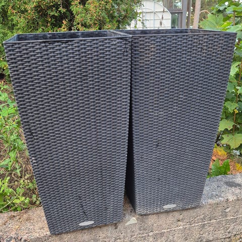 Valkoiset Lechuza cubico 40 altakasteluruukut. Maalin päällä oleva lakka tai vastaava hilseilee irti. Ovh noin 200€/kpl. Nämä yhteishintaan