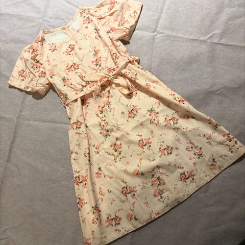 Kaunis kukkamekko koko 122-128cm. Takana selässä napitus.