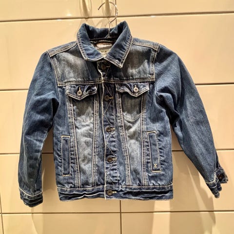 Kukikkainen farkkutakki koko 122cm. Pehmeää farkkukangasta. Hyväkuntoinen ja ehjä.