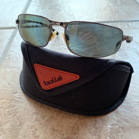 Hyväkuntoiset Bolle aurinkolasit, turva linsseillä. Erinomaiset esimerkiksi autolla tai moottoripyörällä ajoon, hyvät myös kalastaessa. Joustosaranalla ja säädettävillä nenätyynyillä.