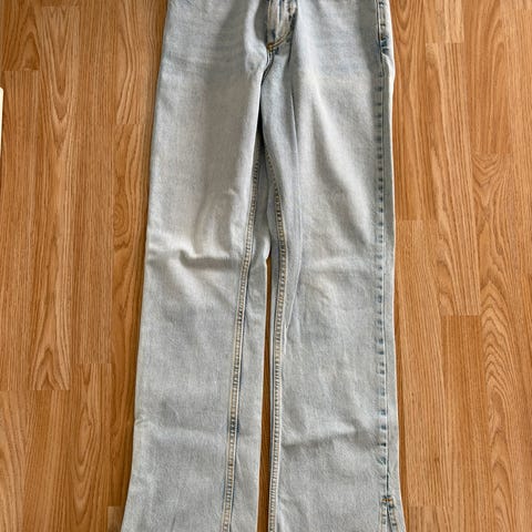 Vaaleat Bik Bokin farkut koossa w28 L32. Malli 90s straight (never denim). Lahkeenpäät kuluneet, muuten perussiistit farkut.
