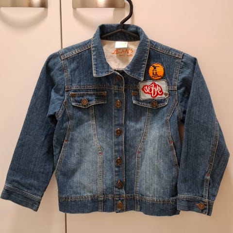 Farkkutakki lapselle, vaalea sininen. Kokolapun olen leikannut pois, vastaa n. kokoa 128/130. Omalla lapsella ollut käytössä 7-9 vuotiaana. Mitat kuvissa. Kunto moitteeton.