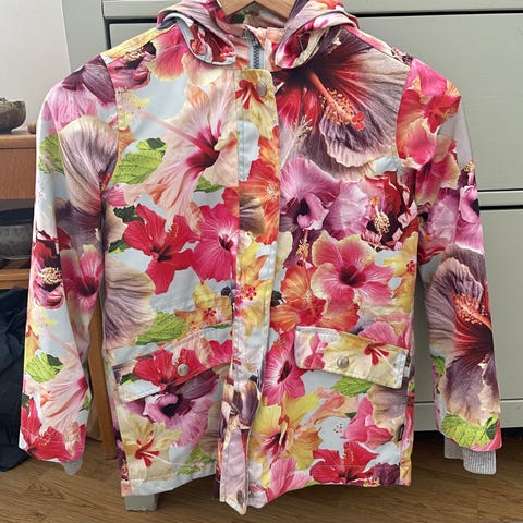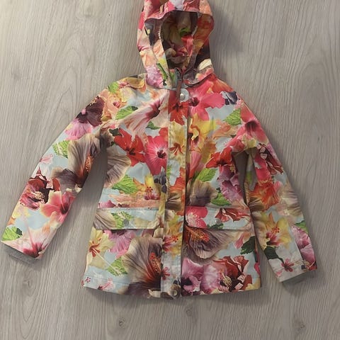 Siistissä kunnossa oleva Molon leopardi kuvioinen välikausi takki, koko 128cm. Hajusteeton talous.