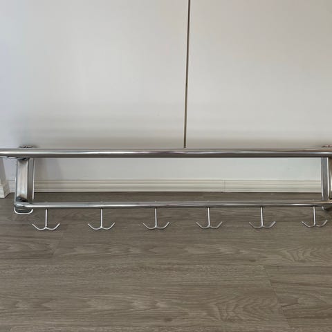 Itsenäisesti seisova funkis-naulakko metallia puisella alustalla. Koko 54x54 cm, korkeus 180 cm. Näitä on kaksi kappaletta. Voit ostaa yhden tai molemmat. Ilmoitettu hinta 150€ on yhden naulakon hinta. Tarjoa!