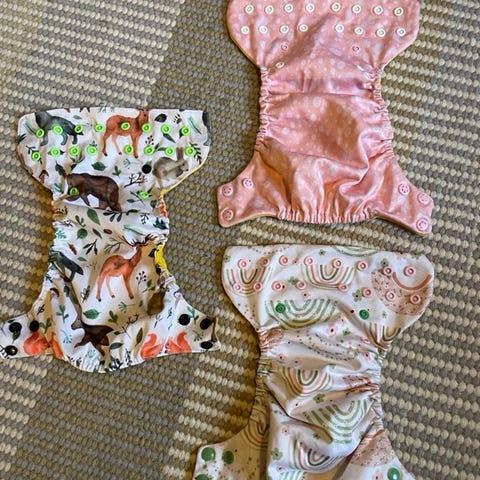 Hahtuvahullun s-kokoinen taskuvaippa. Kuminauhat tummuneet, muutoin en moitteita löydä.