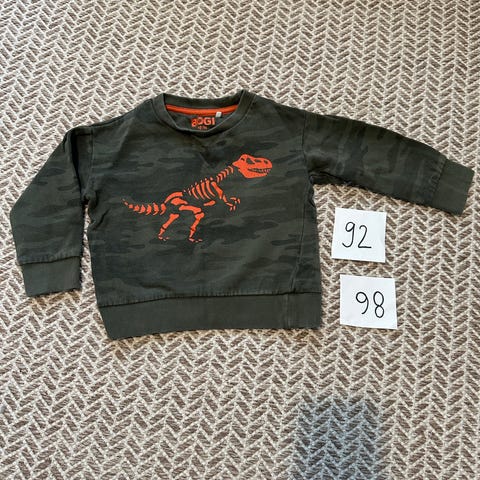 Bogi dinosaurus t-paita koossa 92/98. Vastaa kaksoiskoon pienempää. Meillä otettu käyttöön jo koossa 86.