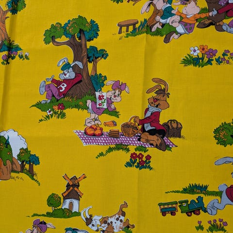 Tenavat -kangaspala, ohutta puuvillaa. Korkeus 115 cm leveys 210 cm. Kangas on uusi.