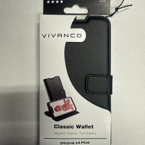 Myydään täysin uusi, alkuperäispakkauksessa oleva Vivanco Classic Wallet -lompakkokotelo, suunniteltu iPhone 14 Max -mallille!