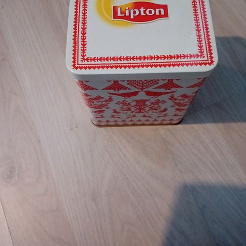 Peltipurkki Liptonin logolla myynnissä. Kunto hyvä.