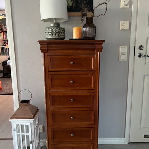 Neljän laatikon kaunis ja koristeellinen lipasto.