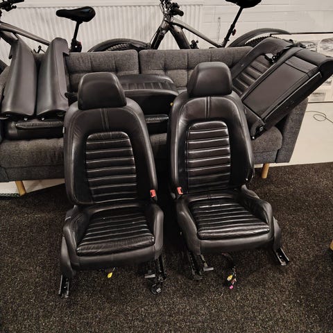 B6 farkku passatista purettu musta nahka-alcantara sisusta. Kuskinpenkki sähköinen.
