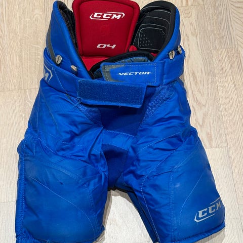 Myynnissä CCM Vector-merkkiset jääkiekkohousut. Koko Jr M eli junioreiden m-koko.