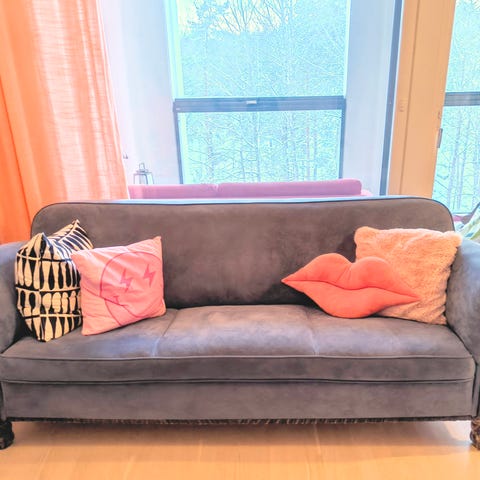 Ihastuttava vanha vintage veluuri sohva etsii uutta kotia muuton alta.