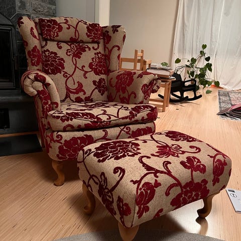 toisessa käsinojassa painauma, ei haittaa ja saa piiloon. Huomioitu hinnassa. Ehjä ja siisti.