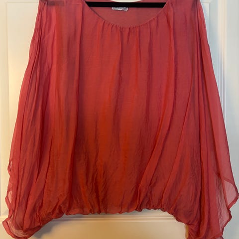 Ompelijan tekemä. Selvästi silkkiä. Upeat isot hihat ja väljä. Ry n 130 cm.