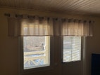 Kolme lyhyttä verhoa 133 cm x 46 cm
