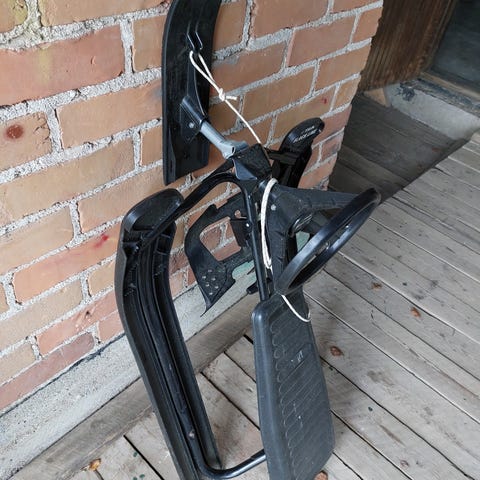 Siistikuntoinen Stiga, jalakset ehjät, vetonaru. Istuimessa halkeama, mutta se ei mäenlaskua haittaa.