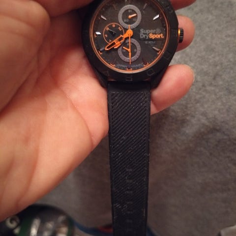 Siisti valkoinen muotikello SuperDry. Tarvitsee uuden pariston.