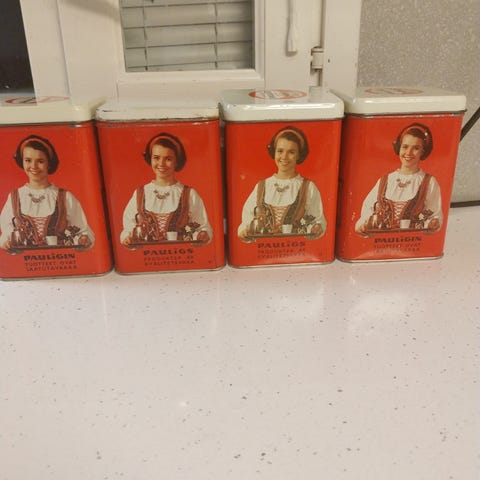 Keräilijöille 6 Pauligin purkkia. 10e/kpl