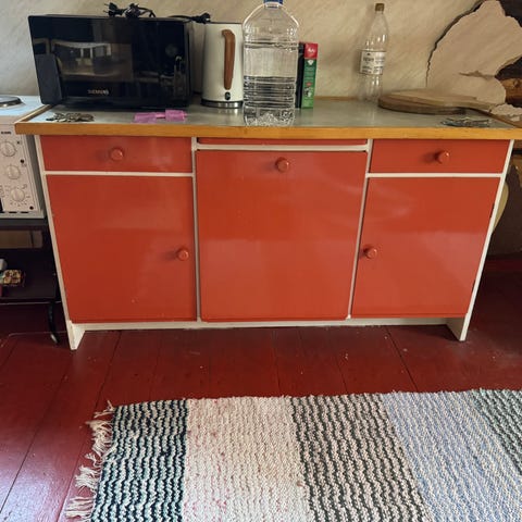 Vanha kokopuinen keittiökaappi,koivua,yläosassa keskellä lasiliukuovet,hyväkuntoinen