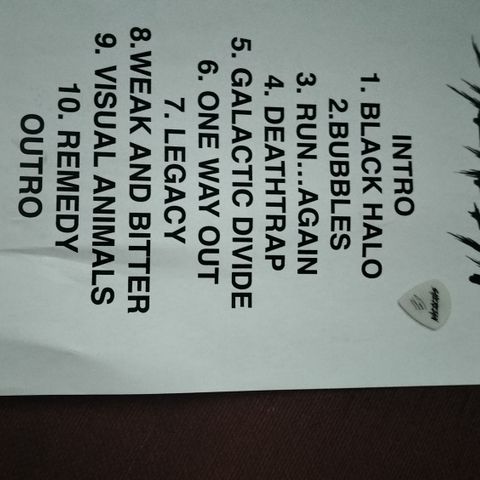 Myydään tarpeettomana kuvan mukainen settilista + plektrat.
