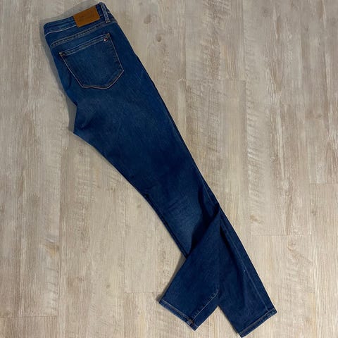 Tommy Hilfigerin valkoiset housut. Koko 29/n. M vastaava. Lahkeet lyhennetty vajaamittaisiksi kesähousuiksi, sisäpituus 63cm.