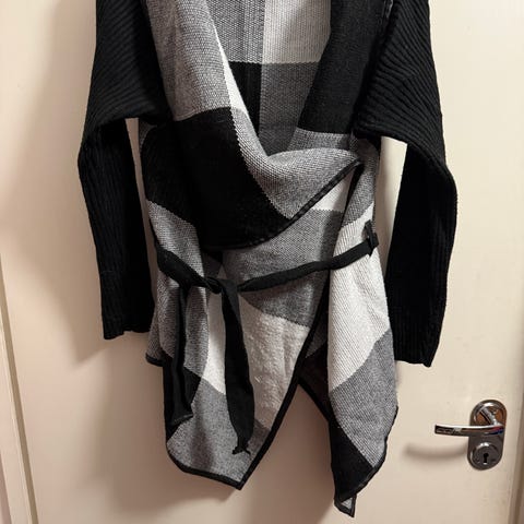 Hieman jo nukkaantunut mutta ehjä neuletakki. Kokoa M