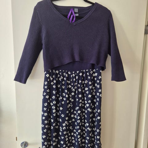 Myydään kaunis tummansininen imetykseen sopiva kesämekko. Huomaamattomat imetykseen sopivat aukot sivuissa