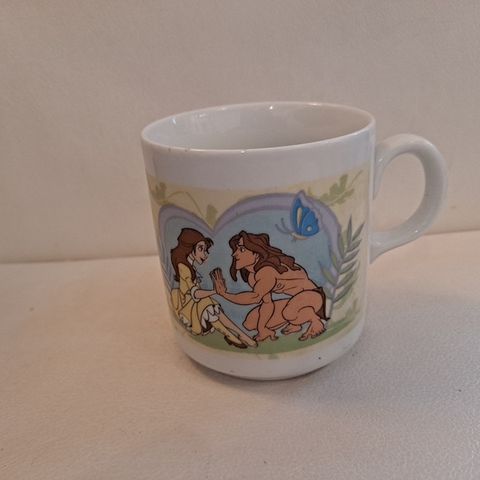 Mukissa piirretyt Tarzan ja Tarzanin äiti Kala. Lasten ruokailu astiat . Uutta vastaavassa kunnossa, sopii vaikka lahjaksi.