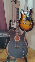 Myydään uudenveroinen Fender American Acoustasonic Telecaster. Valmistettu USA:ssa Californiassa 2021-11. Ollut vain vähäisessä kotikäytössä. Pakettiin kuuluu Fenderin Deluxe Gig Bag sekä liput ja laput. Upea soitin nyt aivan liian vähäisellä käytöllä.