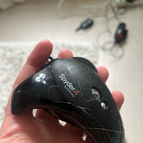 Muutaman kerran käytetty Datacolorin Spyder4EXPRESS näytön kalibrointilaite.
