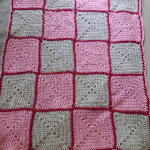 Uusi käsin virkattu vauvan vaunupeitto