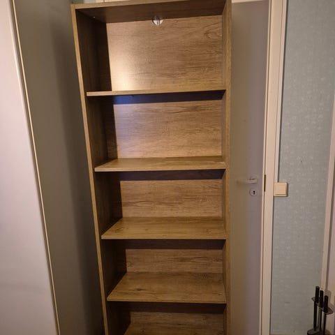Myydään tarpeettomana pieni kirjahylly. Korkeus noin 32cm ja leveys sekä syvyys noin 17,5cm. Kerralla mahtuu neljä isoa kirjaa ja keskeneräinen vielä ns. katolle. Kirjat eivät kuulu kauppaan.