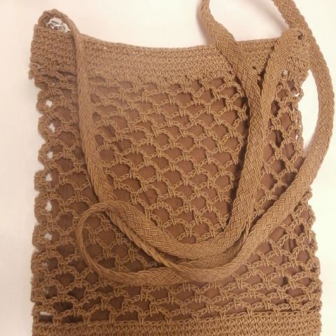 Neulottu käsilaukku, mitat 31 x 33 cm.
