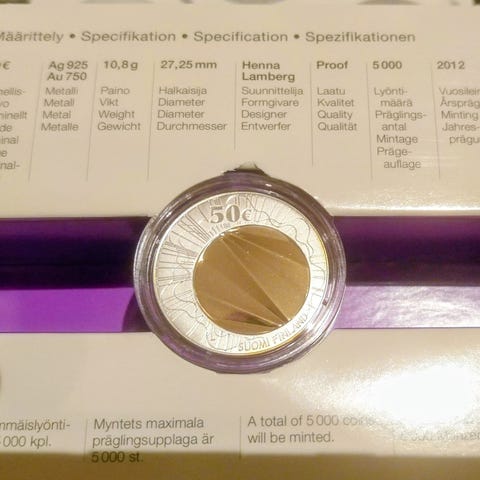 Kaksimetalli Au 6,9 g (750/1000) / Ag 5,9 g (925/1000) Bi-metallic coin