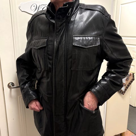Käyttämätön takki, jossa laput edelleen kiinni. Huom! Kauluksen alla vauriota nahkajäljitelmä kaistaleessa.