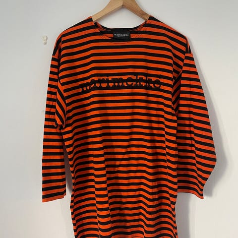 Myyn uudenveroisen Marimekon Ilma-paidan. Tasaraita-kuosi. Sävyt kirkkaanpunainen ja luonnonvalkea. Puuvillaa. Koko S. Pituus 57 cm, kainalo-kainalo 47 cm. Nouto Länsi-Pakilasta tai toimitus diilinä / Postin peruspakettina 8,9 e.