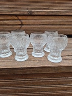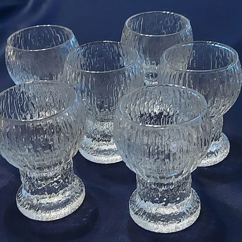 Tilavuus 5cl. Korkeus 7 cm. Hinta yhteensä 6 kpl laseista 45 euroa.