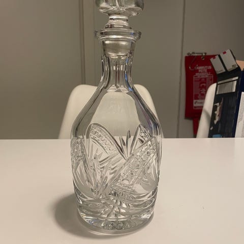 Vanha käyttämätön / hyvin vähän käytetty kristallinen karahvi (painava), kork. 24cm, 55e