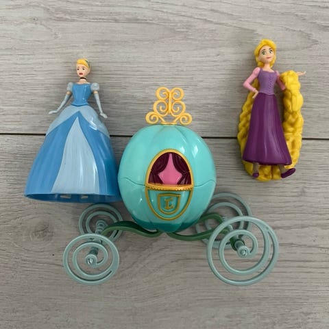 Myydään Disney prinsessat Tuhkimo, Tähkäpää, Belle, Ariel, Ruusunen, Lumikki ja Tiana. Helposti sujautettavat ja vaihdettavat mekot sopivat pienenkin leikkiän käteen. Koko paketti 50 .
