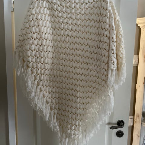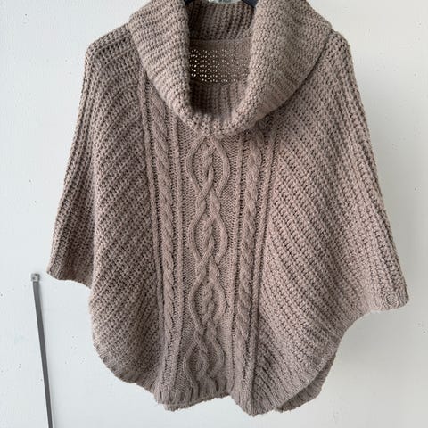Käyttämätön Urban a:n poncho.Sopii moneen kokoon XL asti.Pieni pysty kaulus.Kaunis päällä.Etuosan pituus 70cm,sivuilta 50 cm.Neulottu,ei paksu mutta lämmittävä.Materiaalista en ole varma.Näyttää villalta,mutta ei ole nukkaantunut kaapissa,joten lienee jokin sekoite.