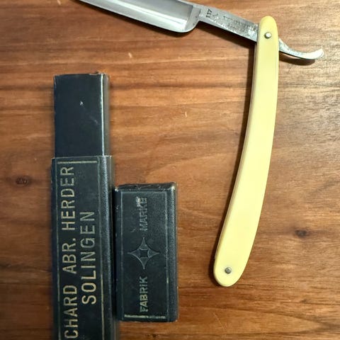 Erittäin vanha partaveitsi. Terä täysin kunnossa.