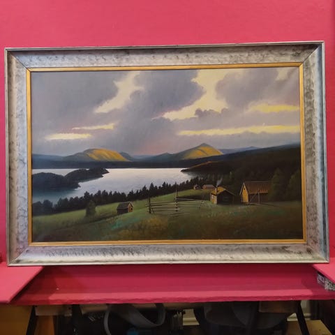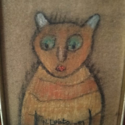 Anneli Turjan öljyvärityö "Kisulit" vuodelta 1975. Työn korkeus on 34 cm ja leveys 81 cm. Kehys 47 X 94 cm.