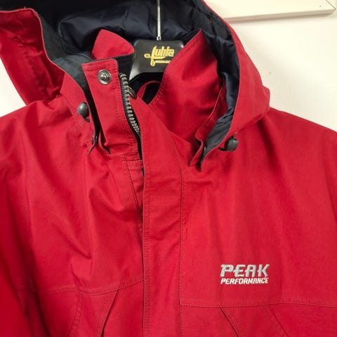 Korjattavaksi (vetoketju rikki edestä sekä hupusta) muuten erinomaisessa kunnossa oleva Peak Performance laskettelutakki koossa XL. Koko todellisuudessa L+ tai L-XL.