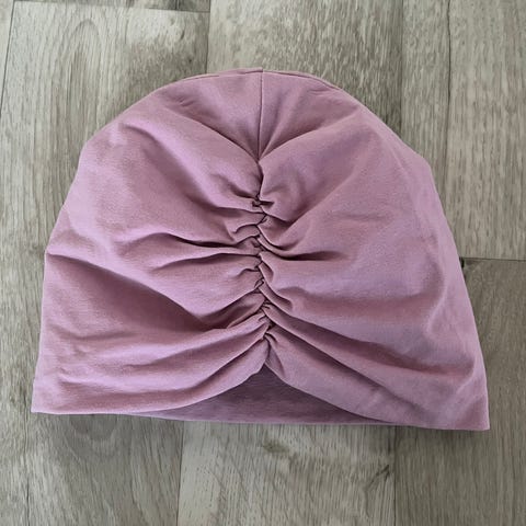 Vaaleanpunainen trikoo pipo, jossa upea ruusuke. Olin oman tyttären suosikkipipo. Pipo on täysin ehjä ja tahraton, vain parempana pipona meillä käytetty. Alareunan leveys on 25,5cm, pipo on joustavaa trikoota, joten ympärysmitta joustaa hyvin. Pipo menee myös aikuisen päähän.